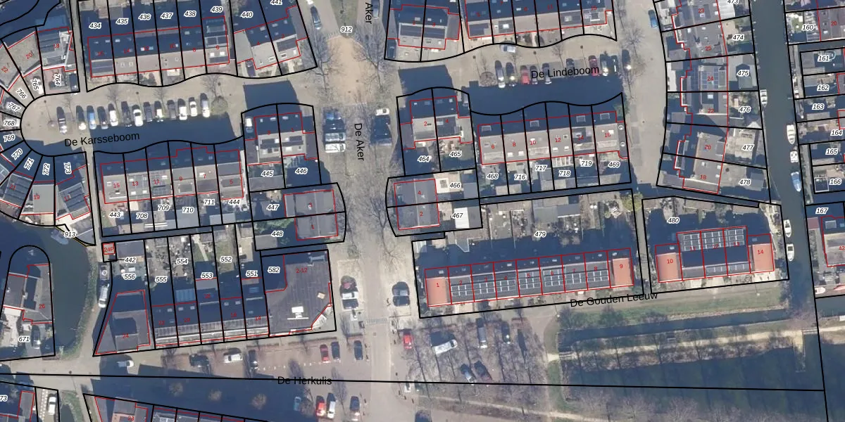 Gebruik de zoekbalk of klik op een perceel voor informatie over de adressen binnen dit perceel.