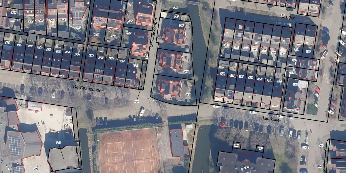 Het perceel waarop De Caascooper 2 staat heeft een oppervlakte van 382 m². Dit is een groot perceel. De perceeloppervlakte wordt geregistreerd door het Kadaster. Gedetailleerde informatie over de maten van dit perceel kunt u vinden in het rapport Kadastrale kaart met maatvoering van De Caascooper 2.