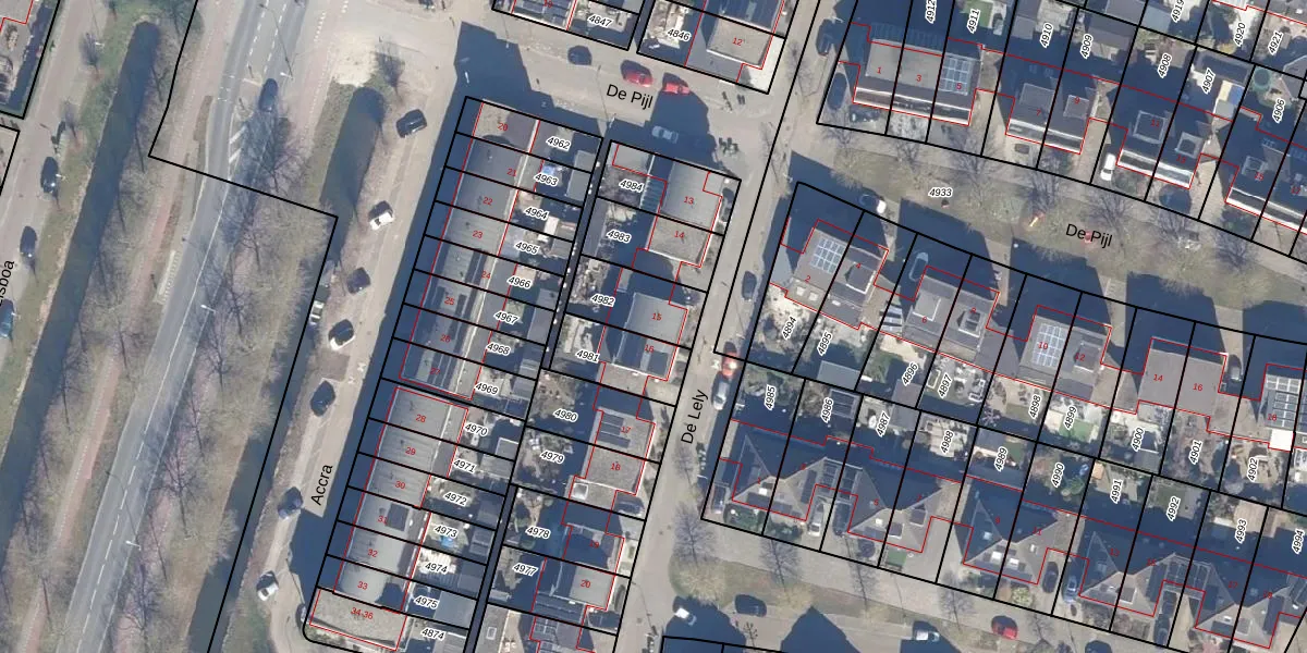 Gebruik de zoekbalk of klik op een perceel voor informatie over de adressen binnen dit perceel.