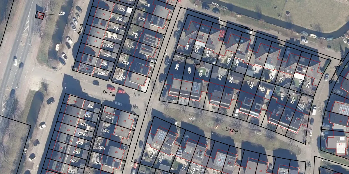 Het perceel waarop De Pijl 1 staat heeft een oppervlakte van 253 m². Dit is een middelgroot perceel. De perceeloppervlakte wordt geregistreerd door het Kadaster. Gedetailleerde informatie over de maten van dit perceel kunt u vinden in het rapport Kadastrale kaart met maatvoering van De Pijl 1.