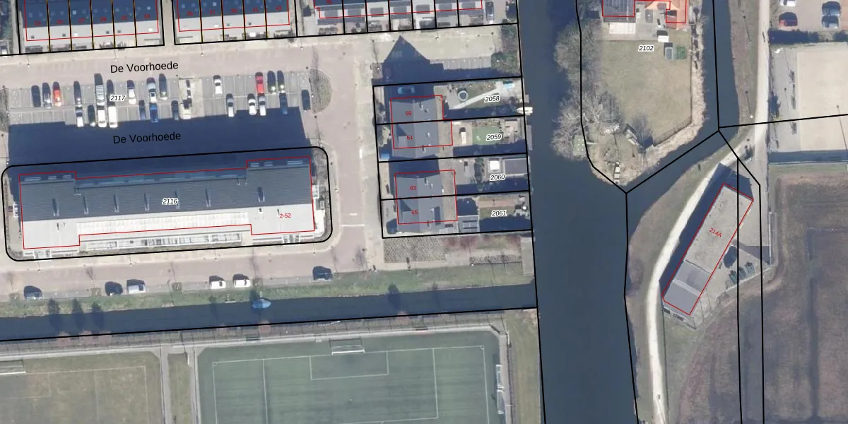 Het perceel waarop De Voorhoede 65 staat heeft een oppervlakte van 322 m². Dit is een groot perceel. De perceeloppervlakte wordt geregistreerd door het Kadaster. Gedetailleerde informatie over de maten van dit perceel kunt u vinden in het rapport Kadastrale kaart met maatvoering van De Voorhoede 65.