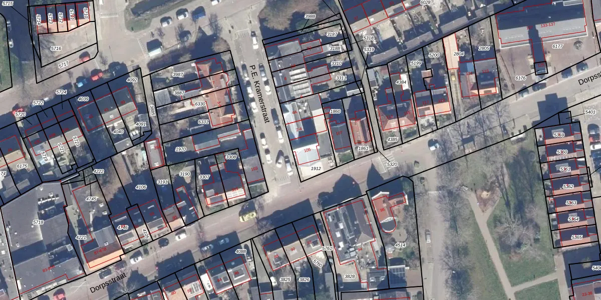 Het perceel waarop Dorpsstraat 105 staat heeft een oppervlakte van 402 m². Dit is een groot perceel. De perceeloppervlakte wordt geregistreerd door het Kadaster. Gedetailleerde informatie over de maten van dit perceel kunt u vinden in het rapport Kadastrale kaart met maatvoering van Dorpsstraat 105.