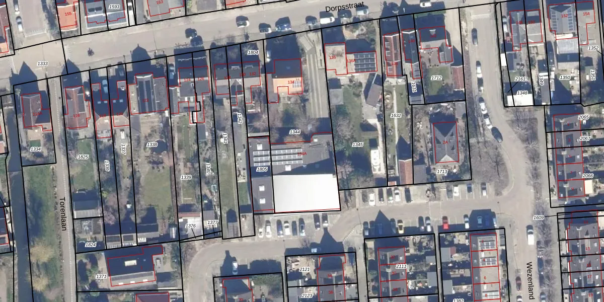 Het perceel waarop Dorpsstraat 134-A staat heeft een oppervlakte van 1233 m². Dit is een zeer groot perceel. De perceeloppervlakte wordt geregistreerd door het Kadaster. Gedetailleerde informatie over de maten van dit perceel kunt u vinden in het rapport Kadastrale kaart met maatvoering van Dorpsstraat 134-A.