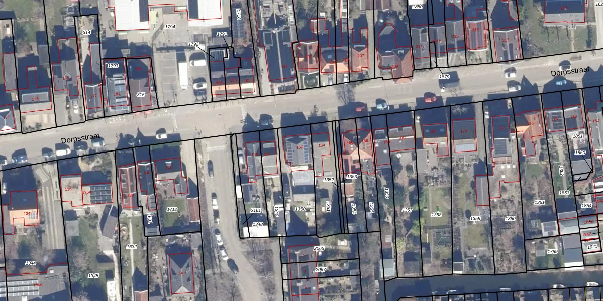 Het perceel waarop Dorpsstraat 152 staat heeft een oppervlakte van 390 m². Dit is een groot perceel. De perceeloppervlakte wordt geregistreerd door het Kadaster. Gedetailleerde informatie over de maten van dit perceel kunt u vinden in het rapport Kadastrale kaart met maatvoering van Dorpsstraat 152.