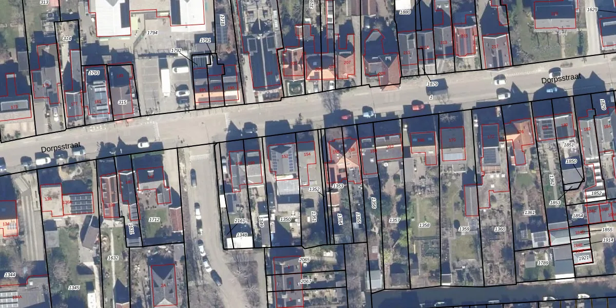 Het perceel waarop Dorpsstraat 154 staat heeft een oppervlakte van 290 m². Dit is een middelgroot perceel. De perceeloppervlakte wordt geregistreerd door het Kadaster. Gedetailleerde informatie over de maten van dit perceel kunt u vinden in het rapport Kadastrale kaart met maatvoering van Dorpsstraat 154.