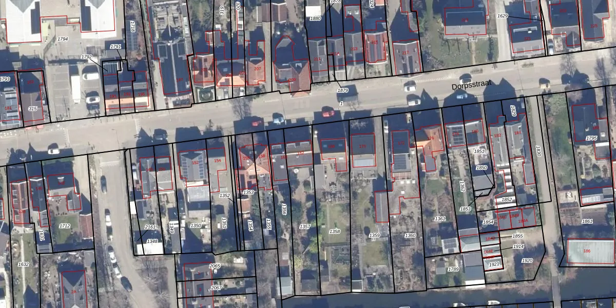 Het perceel waarop Dorpsstraat 162 staat heeft een oppervlakte van 490 m². Dit is een groot perceel. De perceeloppervlakte wordt geregistreerd door het Kadaster. Gedetailleerde informatie over de maten van dit perceel kunt u vinden in het rapport Kadastrale kaart met maatvoering van Dorpsstraat 162.