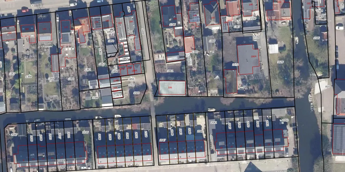 Het perceel waarop Dorpsstraat 186 staat heeft een oppervlakte van 640 m². Dit is een groot perceel. De perceeloppervlakte wordt geregistreerd door het Kadaster. Gedetailleerde informatie over de maten van dit perceel kunt u vinden in het rapport Kadastrale kaart met maatvoering van Dorpsstraat 186.
