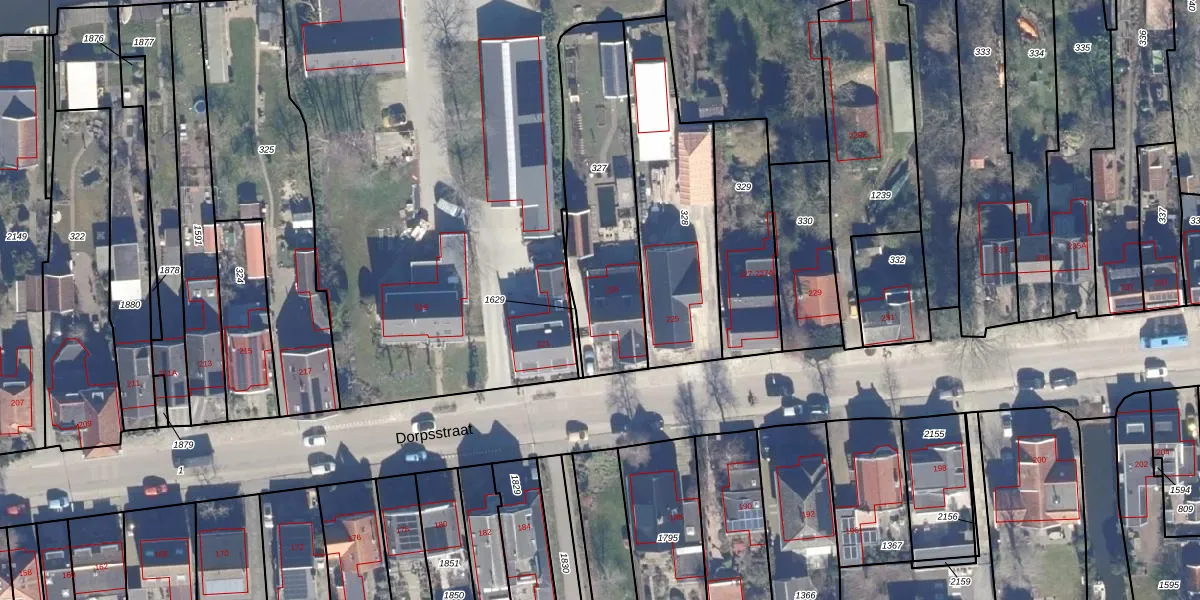 Het perceel waarop Dorpsstraat 223 staat heeft een oppervlakte van 680 m². Dit is een groot perceel. De perceeloppervlakte wordt geregistreerd door het Kadaster. Gedetailleerde informatie over de maten van dit perceel kunt u vinden in het rapport Kadastrale kaart met maatvoering van Dorpsstraat 223.