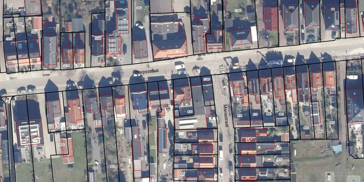 Het perceel waarop Dorpsstraat 246 staat heeft een oppervlakte van 197 m². Dit is een middelgroot perceel. De perceeloppervlakte wordt geregistreerd door het Kadaster. Gedetailleerde informatie over de maten van dit perceel kunt u vinden in het rapport Kadastrale kaart met maatvoering van Dorpsstraat 246.