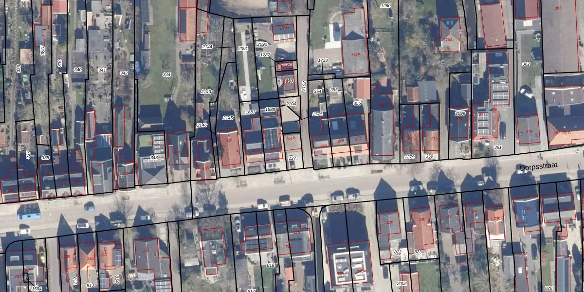 Het perceel waarop Dorpsstraat 261-A staat heeft een oppervlakte van 80 m². Dit is een klein perceel. De perceeloppervlakte wordt geregistreerd door het Kadaster. Gedetailleerde informatie over de maten van dit perceel kunt u vinden in het rapport Kadastrale kaart met maatvoering van Dorpsstraat 261-A.