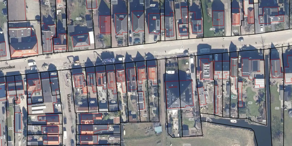 Het perceel waarop Dorpsstraat 262 staat heeft een oppervlakte van 305 m². Dit is een groot perceel. De perceeloppervlakte wordt geregistreerd door het Kadaster. Gedetailleerde informatie over de maten van dit perceel kunt u vinden in het rapport Kadastrale kaart met maatvoering van Dorpsstraat 262.