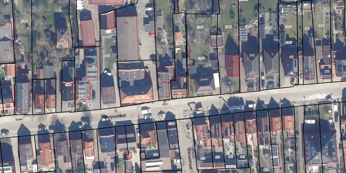 Het perceel waarop Dorpsstraat 287 staat heeft een oppervlakte van 370 m². Dit is een groot perceel. De perceeloppervlakte wordt geregistreerd door het Kadaster. Gedetailleerde informatie over de maten van dit perceel kunt u vinden in het rapport Kadastrale kaart met maatvoering van Dorpsstraat 287.
