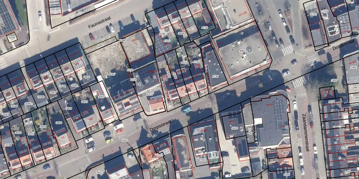 Gebruik de zoekbalk of klik op een perceel voor informatie over de adressen binnen dit perceel.
