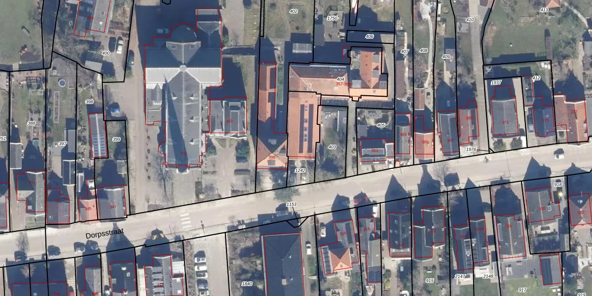 Het perceel waarop Dorpsstraat 357 staat heeft een oppervlakte van 310 m². Dit is een groot perceel. De perceeloppervlakte wordt geregistreerd door het Kadaster. Gedetailleerde informatie over de maten van dit perceel kunt u vinden in het rapport Kadastrale kaart met maatvoering van Dorpsstraat 357.