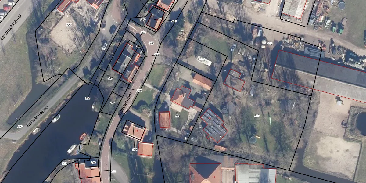 Het perceel waarop Engewormer 2 staat heeft een oppervlakte van 950 m². Dit is een groot perceel. De perceeloppervlakte wordt geregistreerd door het Kadaster. Gedetailleerde informatie over de maten van dit perceel kunt u vinden in het rapport Kadastrale kaart met maatvoering van Engewormer 2.
