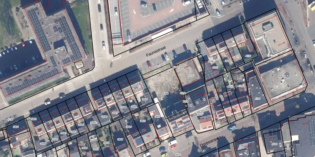 Het perceel waarop Faunastraat 133-R staat heeft een oppervlakte van 525 m². Dit is een groot perceel. De perceeloppervlakte wordt geregistreerd door het Kadaster. Gedetailleerde informatie over de maten van dit perceel kunt u vinden in het rapport Kadastrale kaart met maatvoering van Faunastraat 133-R.