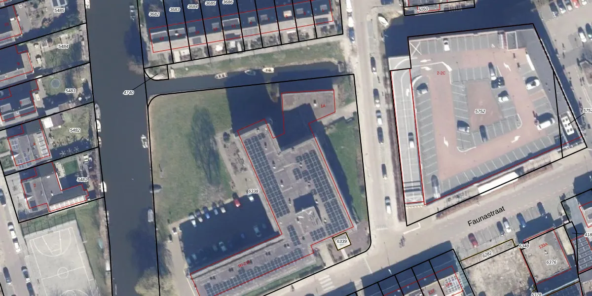 Het perceel waarop Faunastraat 156 staat heeft een oppervlakte van 5038 m². Dit is een zeer groot perceel. De perceeloppervlakte wordt geregistreerd door het Kadaster. Gedetailleerde informatie over de maten van dit perceel kunt u vinden in het rapport Kadastrale kaart met maatvoering van Faunastraat 156.