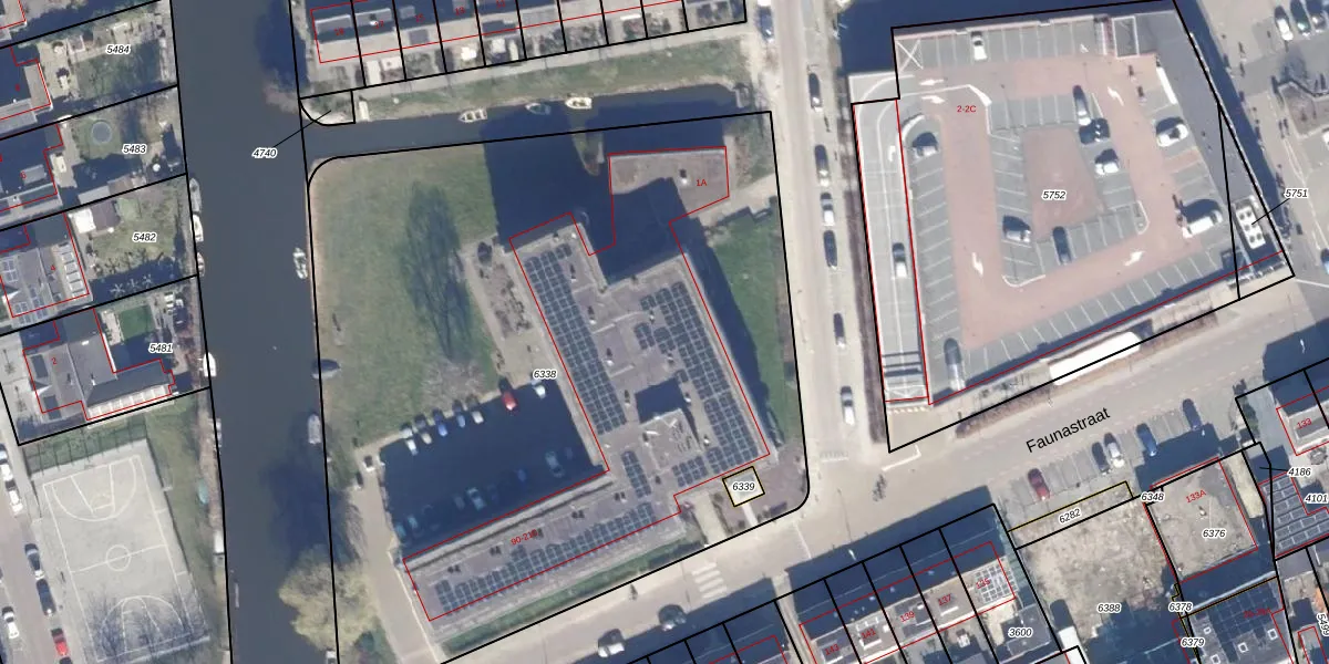 Het perceel waarop Faunastraat 174 staat heeft een oppervlakte van 5038 m². Dit is een zeer groot perceel. De perceeloppervlakte wordt geregistreerd door het Kadaster. Gedetailleerde informatie over de maten van dit perceel kunt u vinden in het rapport Kadastrale kaart met maatvoering van Faunastraat 174.