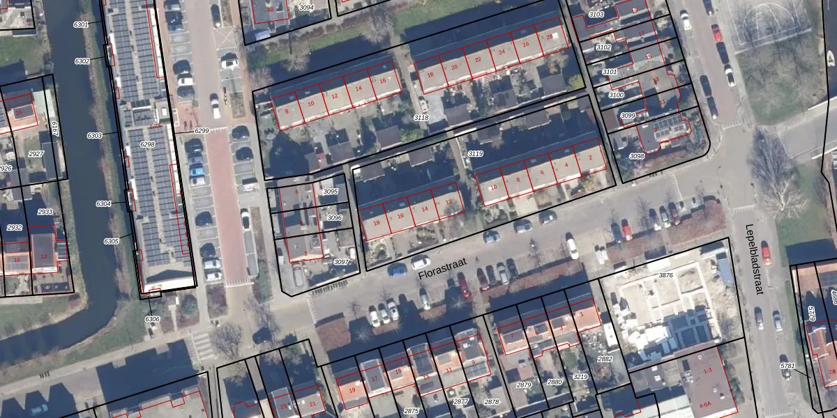 Florastraat 14 is gelegen op kadastraal perceel WMR00F3119. Deze kadastrale aanduiding is uniek en wordt gebruikt door het Kadaster om eigendomsrechten en andere zakelijke rechten vast te leggen. Het perceel maakt onderdeel uit van de kadastrale gemeente Wormer.