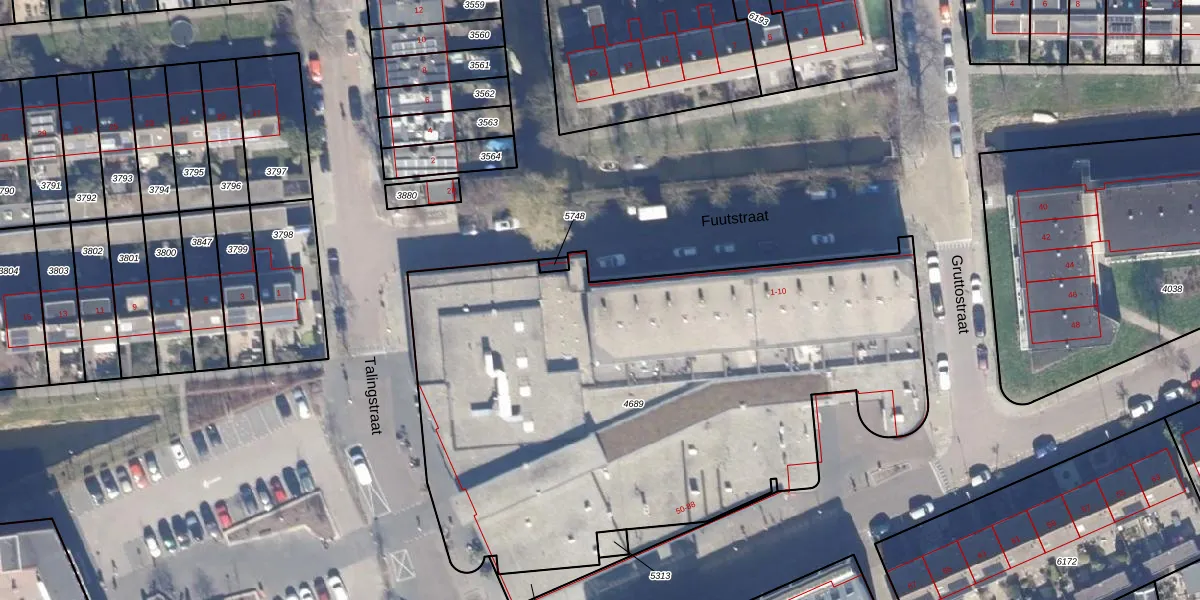 Het perceel waarop Fuutstraat 1 staat heeft een oppervlakte van 3410 m². Dit is een zeer groot perceel. De perceeloppervlakte wordt geregistreerd door het Kadaster. Gedetailleerde informatie over de maten van dit perceel kunt u vinden in het rapport Kadastrale kaart met maatvoering van Fuutstraat 1.