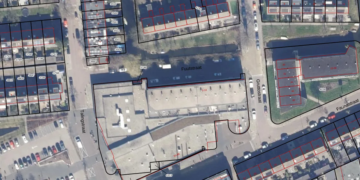 Het perceel waarop Fuutstraat 4 staat heeft een oppervlakte van 3410 m². Dit is een zeer groot perceel. De perceeloppervlakte wordt geregistreerd door het Kadaster. Gedetailleerde informatie over de maten van dit perceel kunt u vinden in het rapport Kadastrale kaart met maatvoering van Fuutstraat 4.