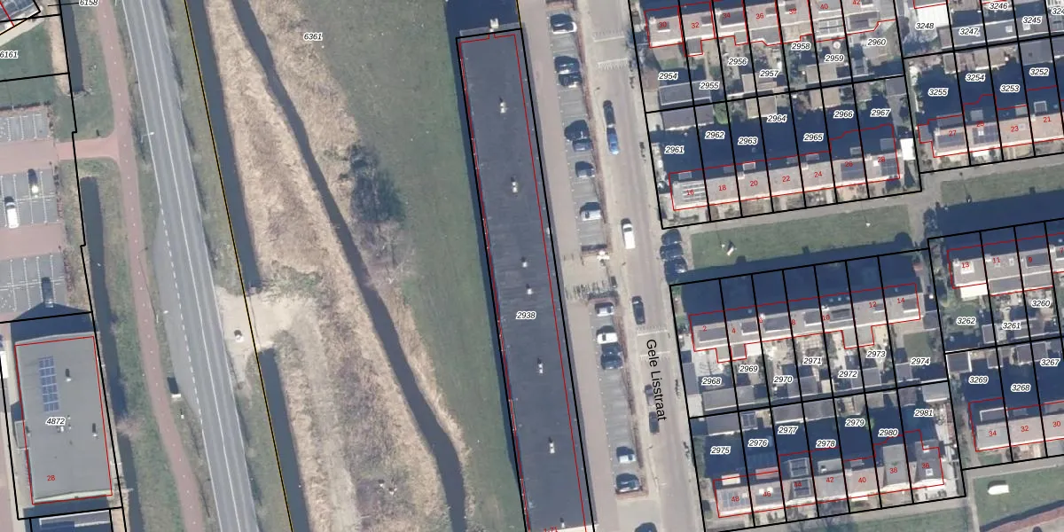 Het perceel waarop Gele Lisstraat 1-D staat heeft een oppervlakte van 1204 m². Dit is een zeer groot perceel. De perceeloppervlakte wordt geregistreerd door het Kadaster. Gedetailleerde informatie over de maten van dit perceel kunt u vinden in het rapport Kadastrale kaart met maatvoering van Gele Lisstraat 1-D.