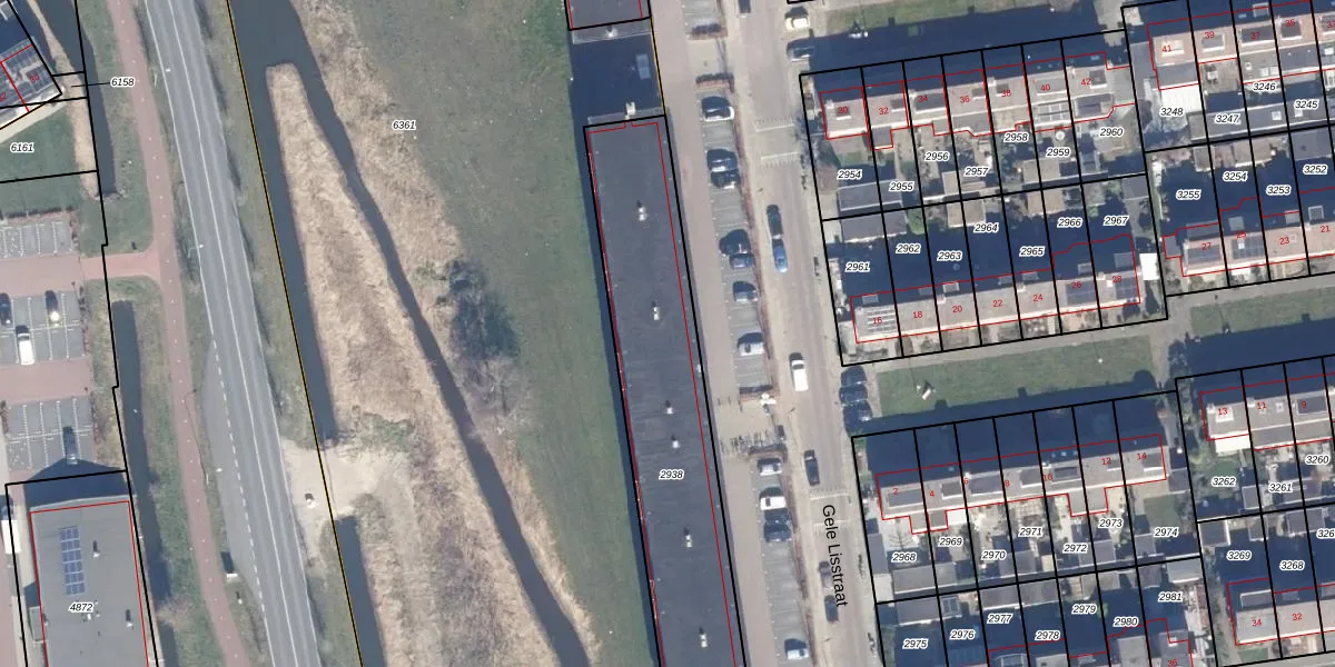 Het perceel waarop Gele Lisstraat 1-K staat heeft een oppervlakte van 1204 m². Dit is een zeer groot perceel. De perceeloppervlakte wordt geregistreerd door het Kadaster. Gedetailleerde informatie over de maten van dit perceel kunt u vinden in het rapport Kadastrale kaart met maatvoering van Gele Lisstraat 1-K.