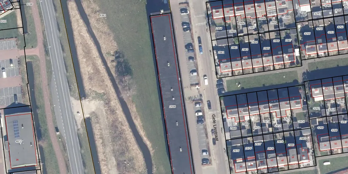 Het perceel waarop Gele Lisstraat 1-E staat heeft een oppervlakte van 1204 m². Dit is een zeer groot perceel. De perceeloppervlakte wordt geregistreerd door het Kadaster. Gedetailleerde informatie over de maten van dit perceel kunt u vinden in het rapport Kadastrale kaart met maatvoering van Gele Lisstraat 1-E.