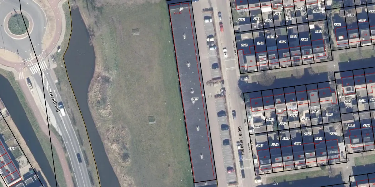 Het perceel waarop Gele Lisstraat 111 staat heeft een oppervlakte van 1201 m². Dit is een zeer groot perceel. De perceeloppervlakte wordt geregistreerd door het Kadaster. Gedetailleerde informatie over de maten van dit perceel kunt u vinden in het rapport Kadastrale kaart met maatvoering van Gele Lisstraat 111.