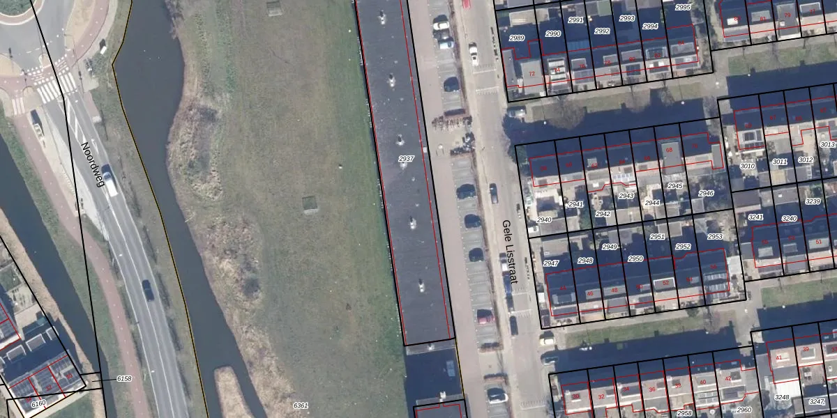 Het perceel waarop Gele Lisstraat 73-A staat heeft een oppervlakte van 1201 m². Dit is een zeer groot perceel. De perceeloppervlakte wordt geregistreerd door het Kadaster. Gedetailleerde informatie over de maten van dit perceel kunt u vinden in het rapport Kadastrale kaart met maatvoering van Gele Lisstraat 73-A.