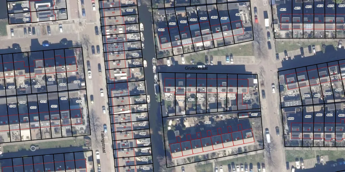 Gruttostraat 63 is gelegen op kadastraal perceel WMR00F3409. Deze kadastrale aanduiding is uniek en wordt gebruikt door het Kadaster om eigendomsrechten en andere zakelijke rechten vast te leggen. Het perceel maakt onderdeel uit van de kadastrale gemeente Wormer.