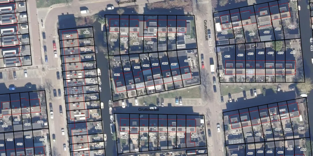 Het perceel waarop Gruttostraat 71 staat heeft een oppervlakte van 155 m². Dit is een middelgroot perceel. De perceeloppervlakte wordt geregistreerd door het Kadaster. Gedetailleerde informatie over de maten van dit perceel kunt u vinden in het rapport Kadastrale kaart met maatvoering van Gruttostraat 71.