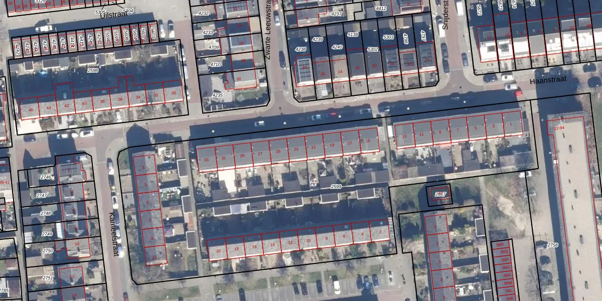Het perceel waarop Haanstraat 23 staat heeft een oppervlakte van 5183 m². Dit is een zeer groot perceel. De perceeloppervlakte wordt geregistreerd door het Kadaster. Gedetailleerde informatie over de maten van dit perceel kunt u vinden in het rapport Kadastrale kaart met maatvoering van Haanstraat 23.