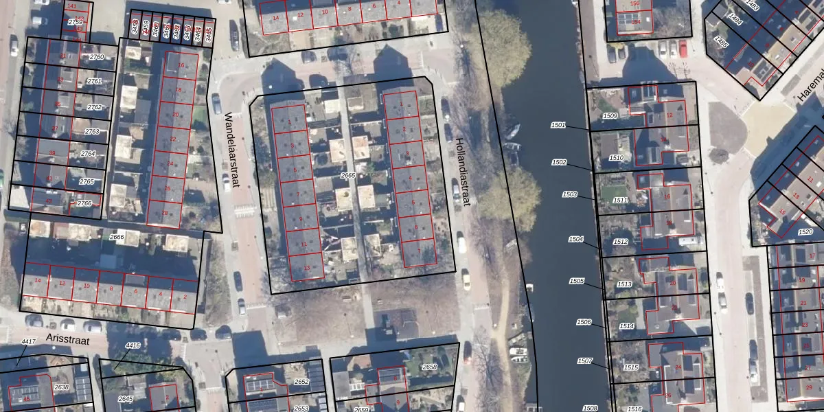 Het perceel waarop Hollandiastraat 5 staat heeft een oppervlakte van 2157 m². Dit is een zeer groot perceel. De perceeloppervlakte wordt geregistreerd door het Kadaster. Gedetailleerde informatie over de maten van dit perceel kunt u vinden in het rapport Kadastrale kaart met maatvoering van Hollandiastraat 5.