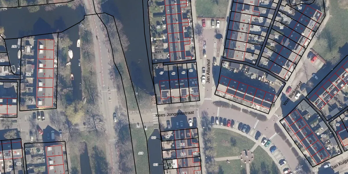 Gebruik de zoekbalk of klik op een perceel voor informatie over de adressen binnen dit perceel.
