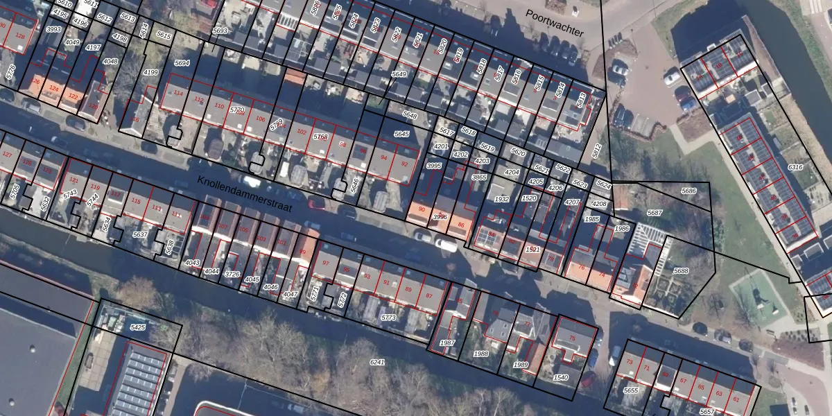 Het perceel waarop Knollendammerstraat 90 staat heeft een oppervlakte van 95 m². Dit is een klein perceel. De perceeloppervlakte wordt geregistreerd door het Kadaster. Gedetailleerde informatie over de maten van dit perceel kunt u vinden in het rapport Kadastrale kaart met maatvoering van Knollendammerstraat 90.