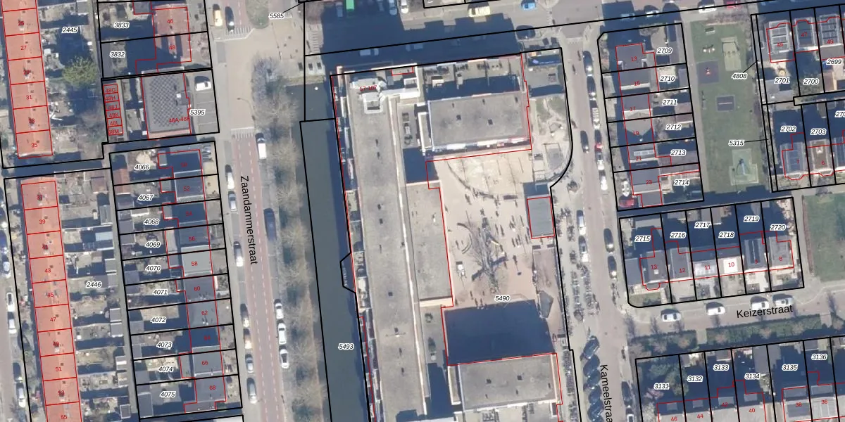 Het adres ligt op het perceel WMR00-F-5490, dat zich in de kadastrale gemeente Wormer bevindt. De oppervlakte van het perceel is 4923 m². Dat is groter dan gemiddeld in Wormer, waar de gemiddelde perceeloppervlakte op 2750,49 m² ligt. Het grootste perceel in de kadastrale gemeente is 41,3 ha. Het kleinste perceel heeft een oppervlakte van 0 m². Op het perceel liggen in totaal 64 adressen. In de Basisregistratie Kadaster (BRK) werden de grenzen van het perceel geregistreerd op 07-01-2008.