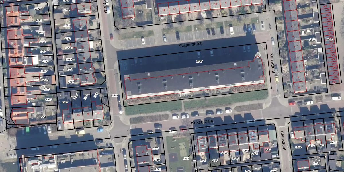 Het perceel waarop Kuijperstraat 51 staat heeft een oppervlakte van 2327 m². Dit is een zeer groot perceel. De perceeloppervlakte wordt geregistreerd door het Kadaster. Gedetailleerde informatie over de maten van dit perceel kunt u vinden in het rapport Kadastrale kaart met maatvoering van Kuijperstraat 51.