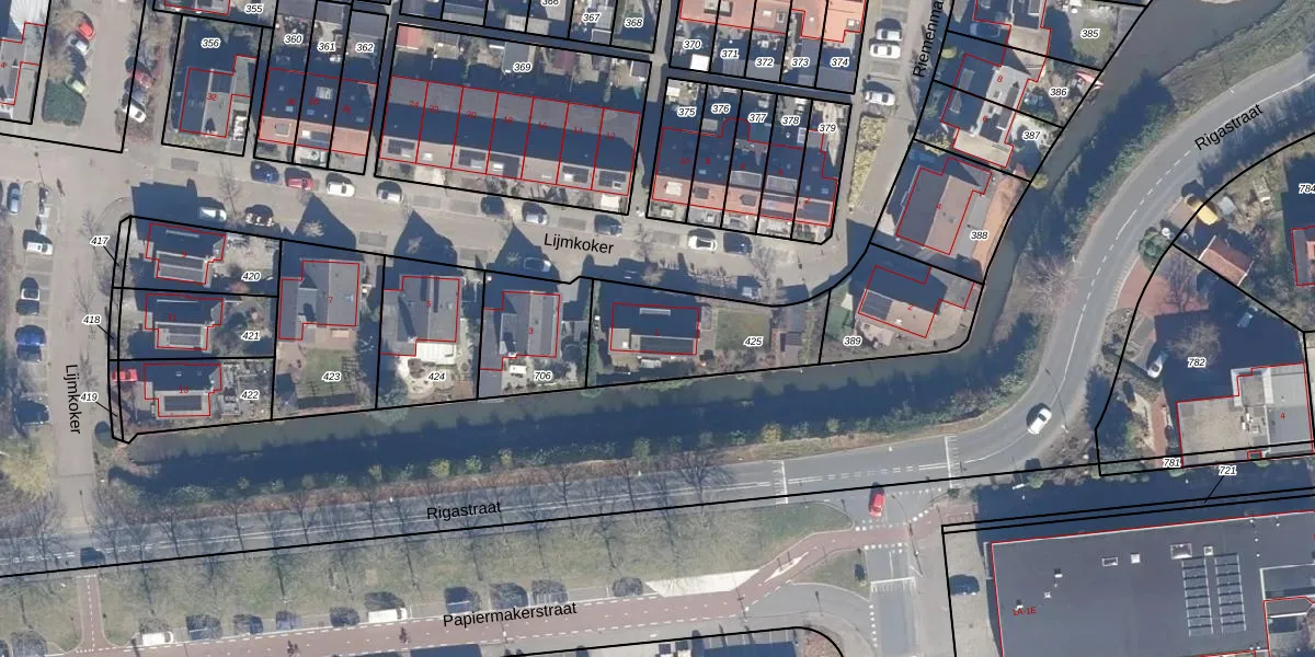 Het perceel waarop Lijmkoker 1 staat heeft een oppervlakte van 443 m². Dit is een groot perceel. De perceeloppervlakte wordt geregistreerd door het Kadaster. Gedetailleerde informatie over de maten van dit perceel kunt u vinden in het rapport Kadastrale kaart met maatvoering van Lijmkoker 1.