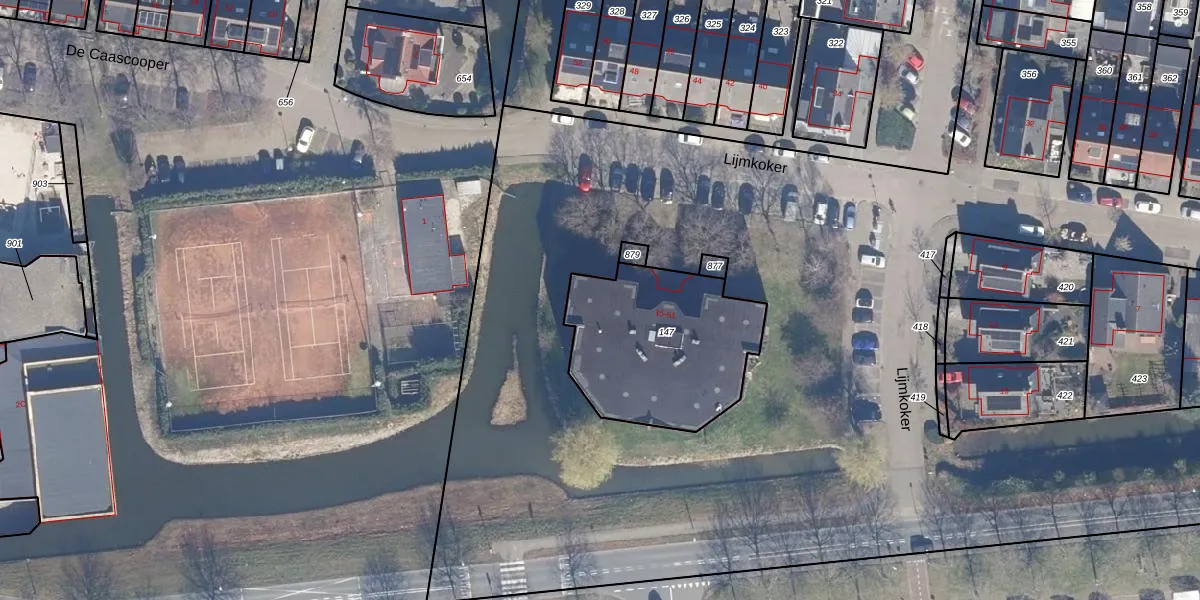 Het perceel waarop Lijmkoker 39 staat heeft een oppervlakte van 715 m². Dit is een groot perceel. De perceeloppervlakte wordt geregistreerd door het Kadaster. Gedetailleerde informatie over de maten van dit perceel kunt u vinden in het rapport Kadastrale kaart met maatvoering van Lijmkoker 39.