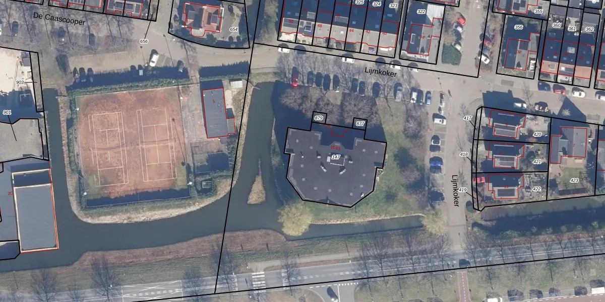 Het perceel waarop Lijmkoker 43 staat heeft een oppervlakte van 715 m². Dit is een groot perceel. De perceeloppervlakte wordt geregistreerd door het Kadaster. Gedetailleerde informatie over de maten van dit perceel kunt u vinden in het rapport Kadastrale kaart met maatvoering van Lijmkoker 43.
