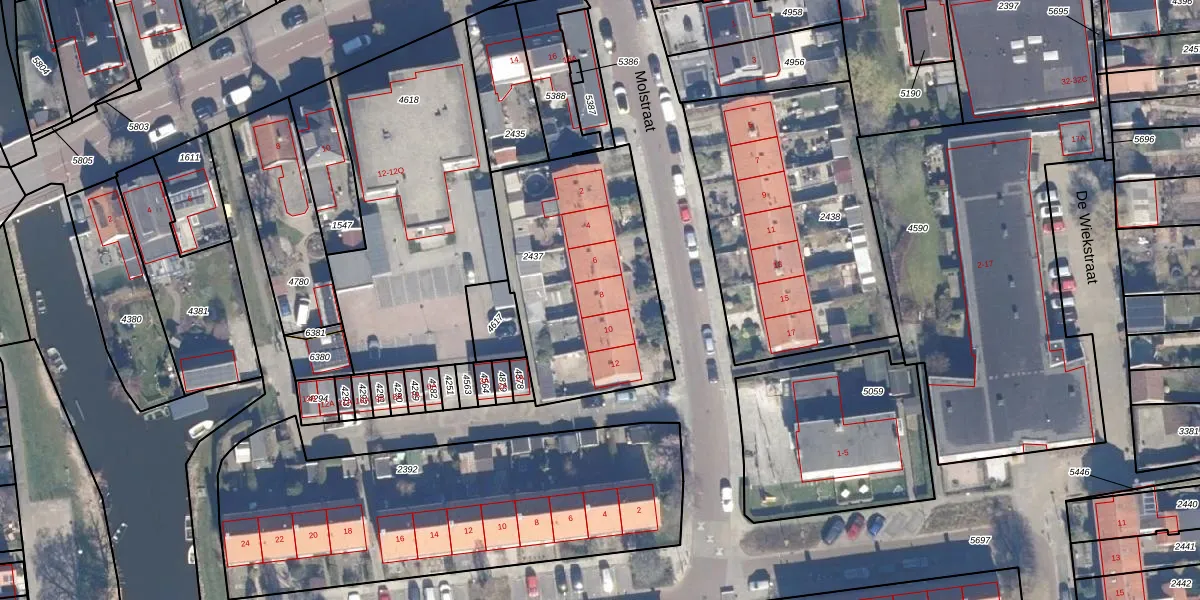 Molstraat 8 is gelegen op kadastraal perceel WMR00F2437. Deze kadastrale aanduiding is uniek en wordt gebruikt door het Kadaster om eigendomsrechten en andere zakelijke rechten vast te leggen. Het perceel maakt onderdeel uit van de kadastrale gemeente Wormer.