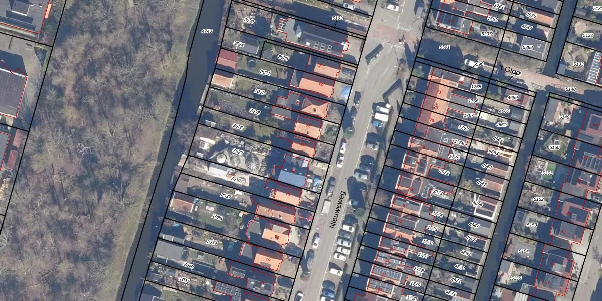 Het perceel waarop Nieuweweg 66 staat heeft een oppervlakte van 286 m². Dit is een middelgroot perceel. De perceeloppervlakte wordt geregistreerd door het Kadaster. Gedetailleerde informatie over de maten van dit perceel kunt u vinden in het rapport Kadastrale kaart met maatvoering van Nieuweweg 66.