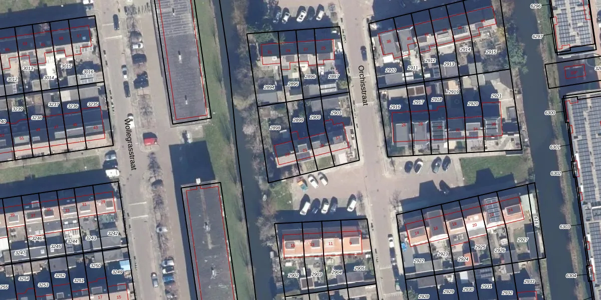 Gebruik de zoekbalk of klik op een perceel voor informatie over de adressen binnen dit perceel.