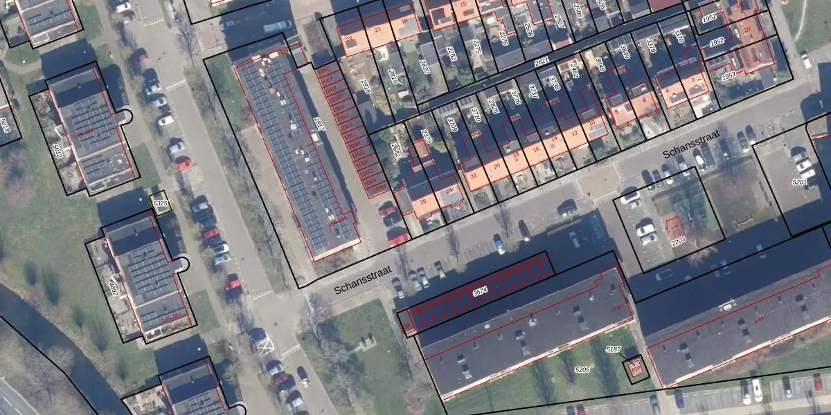 Gebruik de zoekbalk of klik op een perceel voor informatie over de adressen binnen dit perceel.