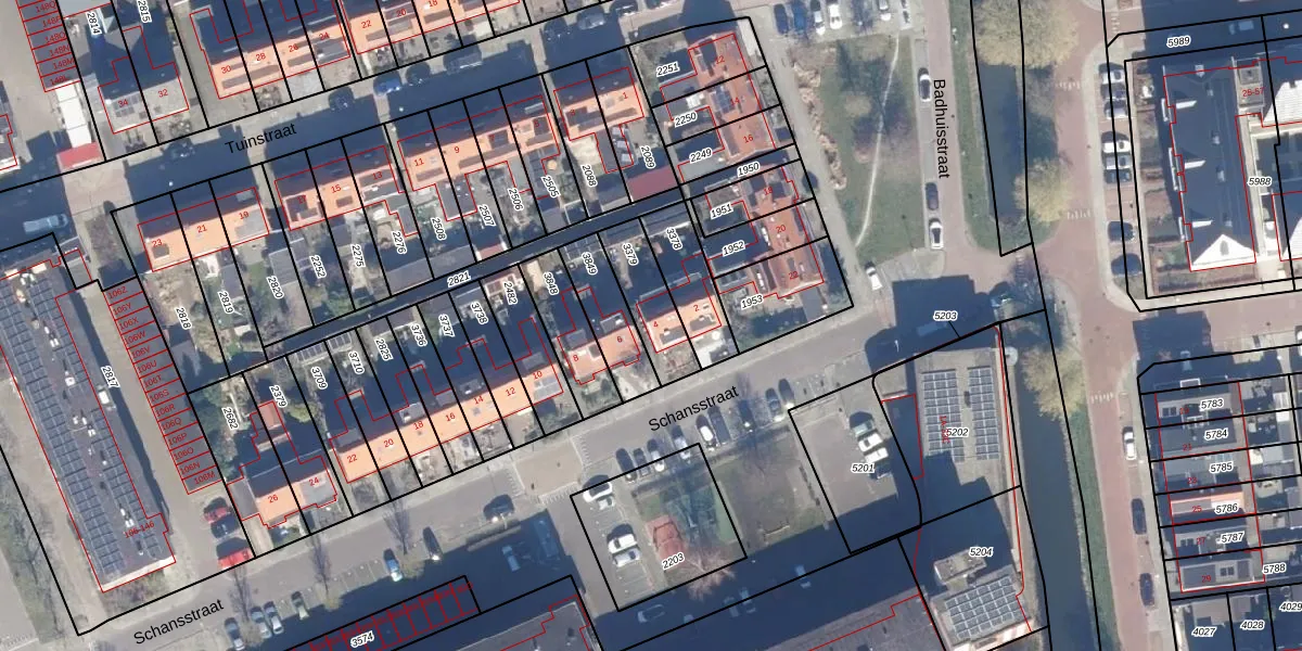 Het perceel waarop Schansstraat 4 staat heeft een oppervlakte van 173 m². Dit is een middelgroot perceel. De perceeloppervlakte wordt geregistreerd door het Kadaster. Gedetailleerde informatie over de maten van dit perceel kunt u vinden in het rapport Kadastrale kaart met maatvoering van Schansstraat 4.