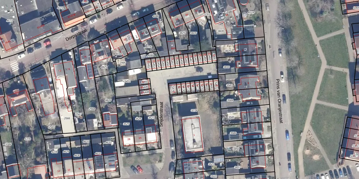 Het perceel waarop Snijderstraat 1-B staat heeft een oppervlakte van 18 m². Dit is een klein perceel. De perceeloppervlakte wordt geregistreerd door het Kadaster. Gedetailleerde informatie over de maten van dit perceel kunt u vinden in het rapport Kadastrale kaart met maatvoering van Snijderstraat 1-B.