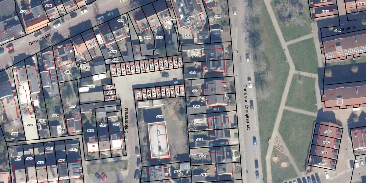 Het perceel waarop Snijderstraat 1-K staat heeft een oppervlakte van 21 m². Dit is een klein perceel. De perceeloppervlakte wordt geregistreerd door het Kadaster. Gedetailleerde informatie over de maten van dit perceel kunt u vinden in het rapport Kadastrale kaart met maatvoering van Snijderstraat 1-K.