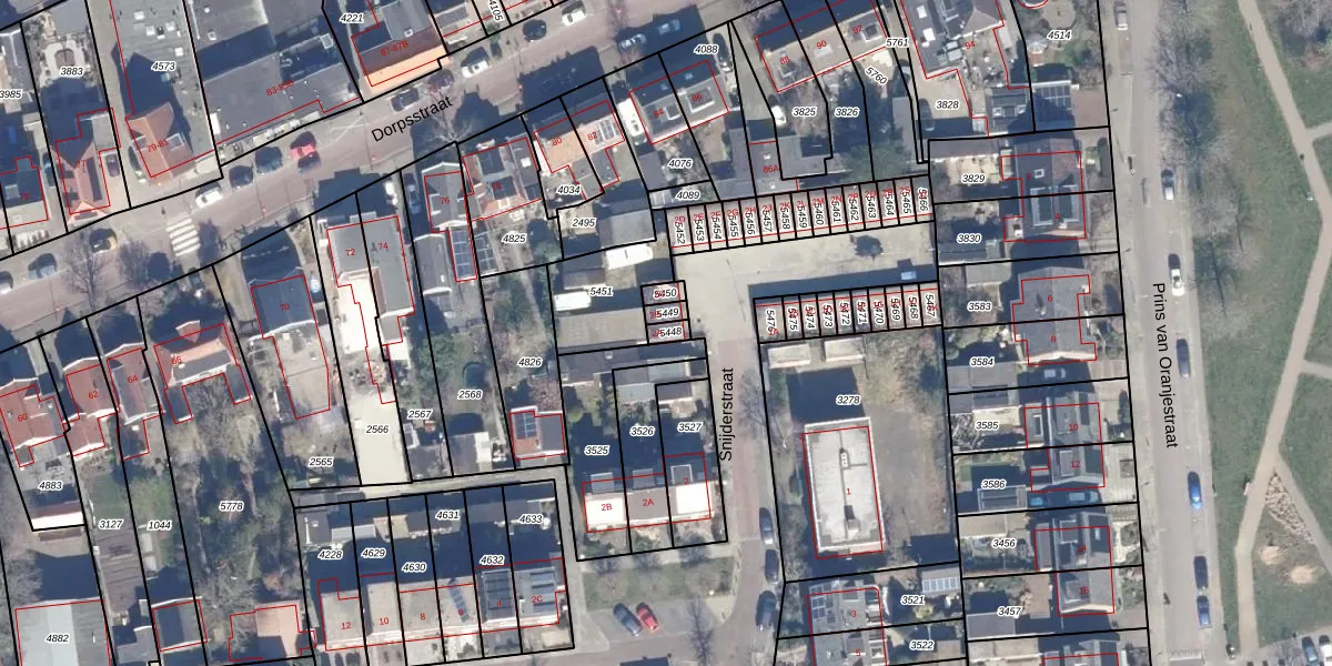 Het perceel waarop Snijderstraat 2-A staat heeft een oppervlakte van 19 m². Dit is een klein perceel. De perceeloppervlakte wordt geregistreerd door het Kadaster. Gedetailleerde informatie over de maten van dit perceel kunt u vinden in het rapport Kadastrale kaart met maatvoering van Snijderstraat 2-A.