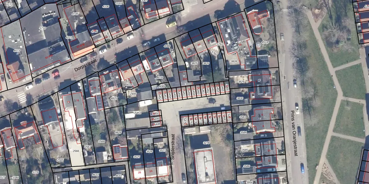 Het perceel waarop Snijderstraat 2-J staat heeft een oppervlakte van 18 m². Dit is een klein perceel. De perceeloppervlakte wordt geregistreerd door het Kadaster. Gedetailleerde informatie over de maten van dit perceel kunt u vinden in het rapport Kadastrale kaart met maatvoering van Snijderstraat 2-J.